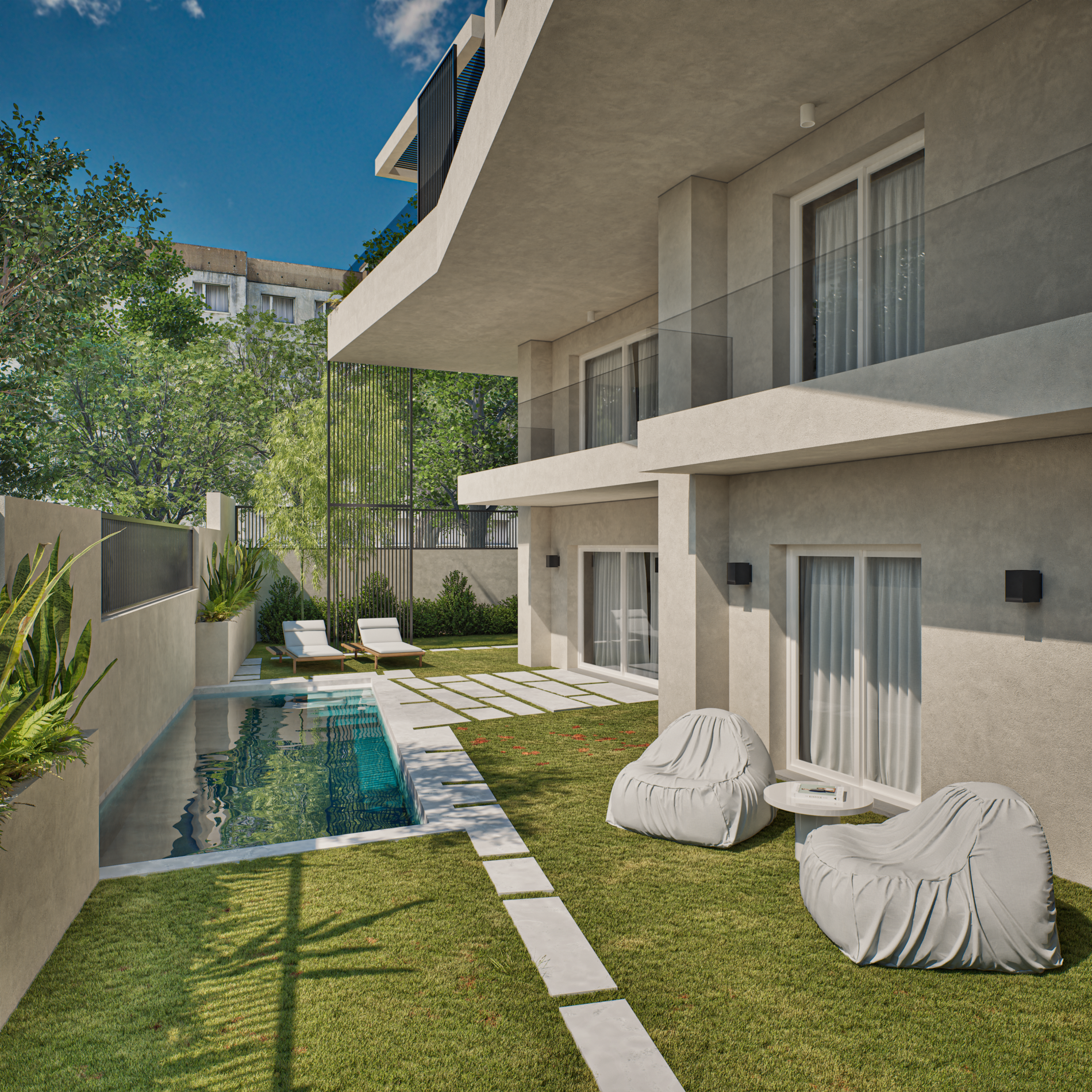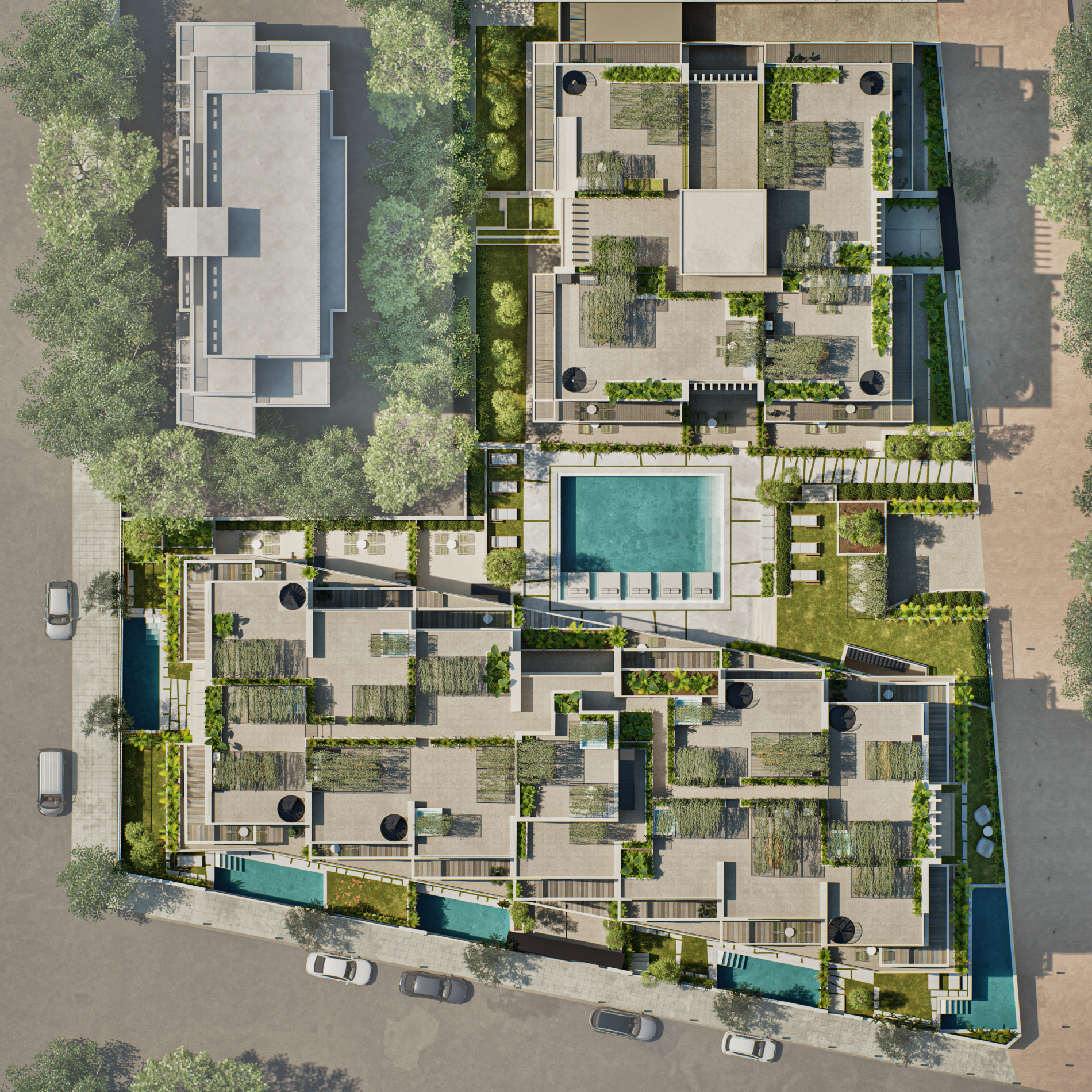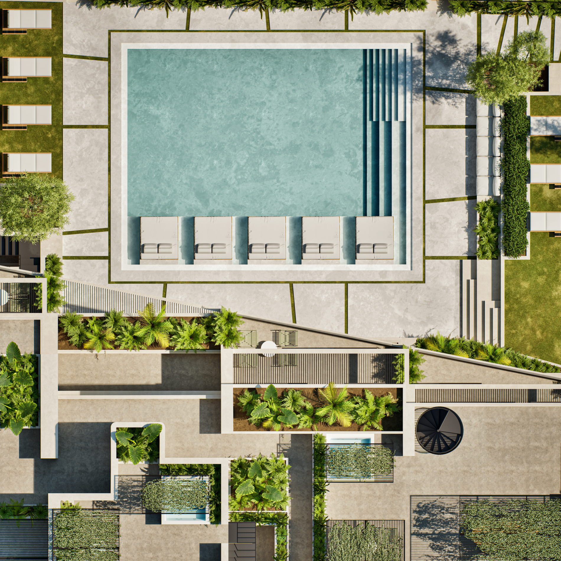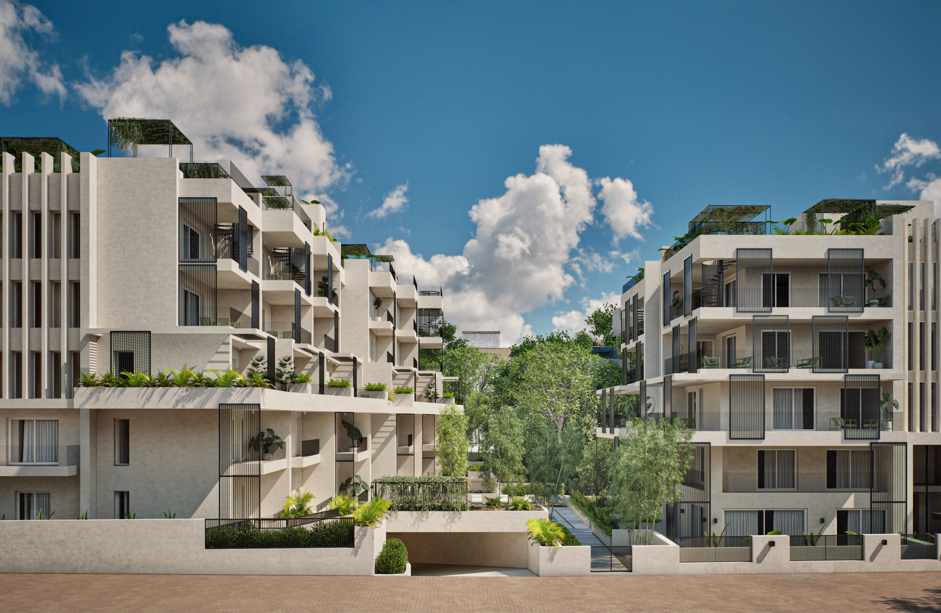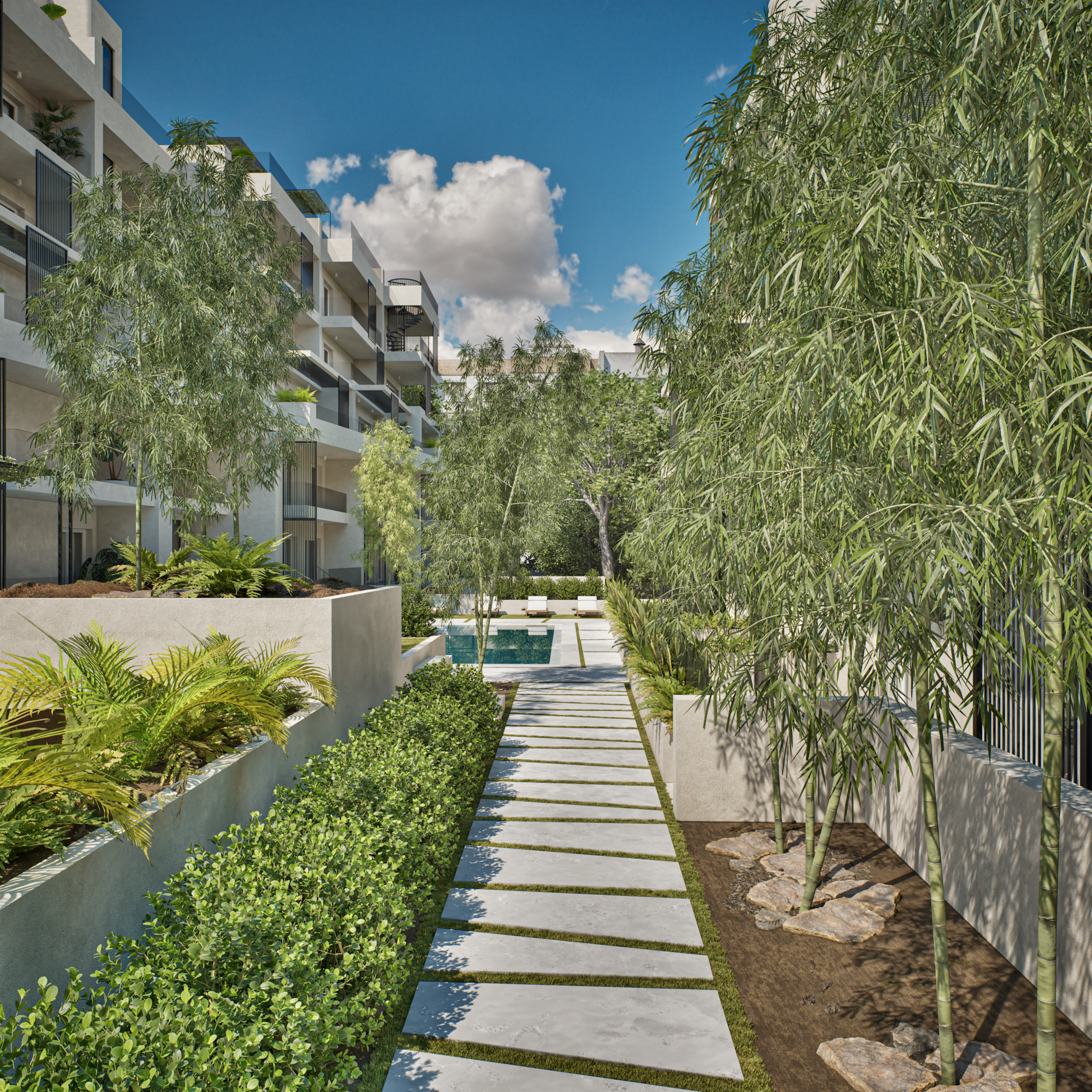 Samirah Luxury residences complex is a testament to thoughtful transformation, repurposing two 1970s industrial buildings into 6.200 sq. m. of modern residences across 59 units. Architectural services covered the entire process, from concept development through detailed design, focusing on redefining both the interior layouts and the external identity of the structures. Reconfigured floor plans introduced efficient apartment living while new façade elements enhanced light, privacy, and visual character. Shared outdoor amenities, including landscaped communal spaces and a central pool, were integrated to enhance the urban living experience. The project demonstrates how strategic architectural intervention can revitalize existing structures and create a modern residential environment that balances functionality, comfort, and community.